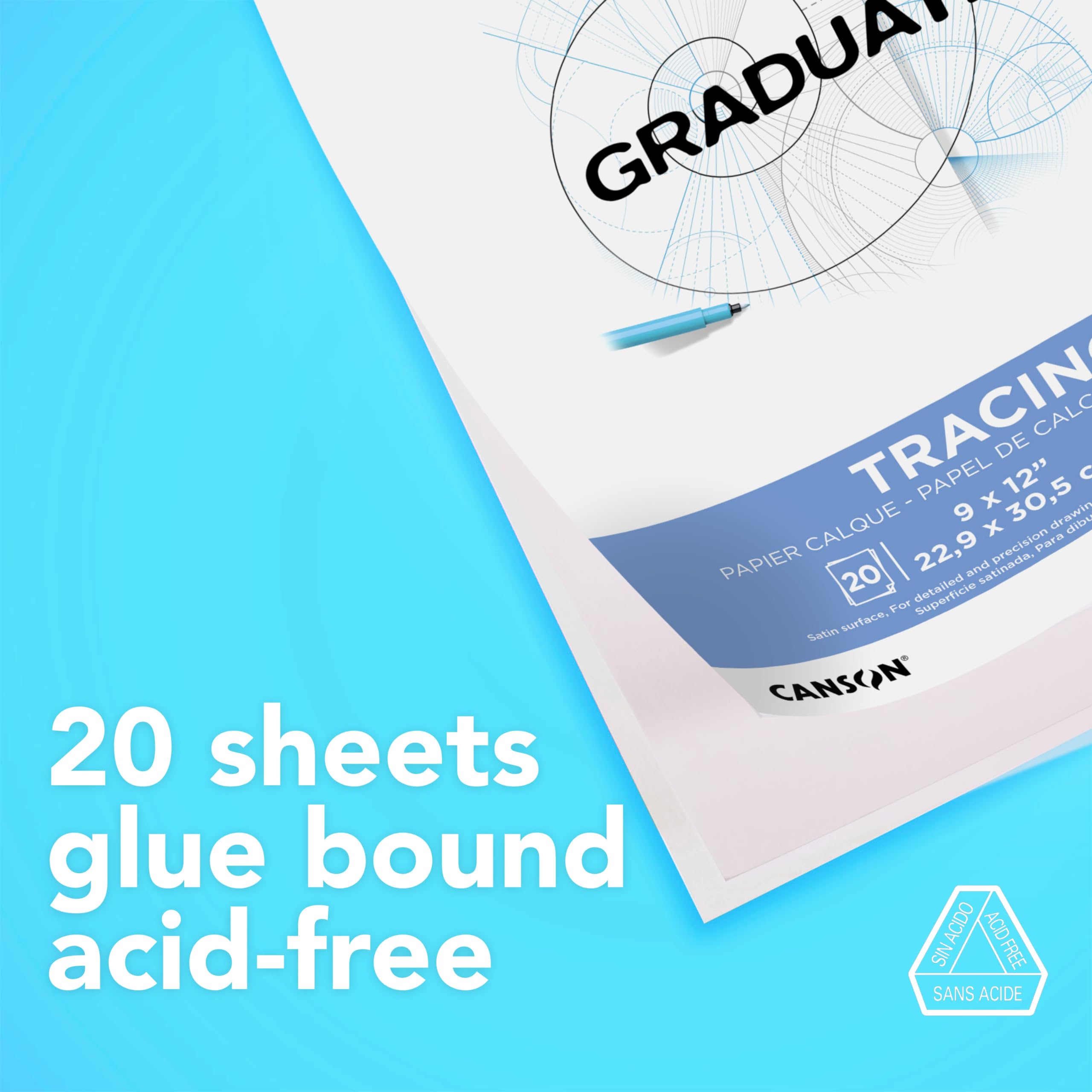 Canson Graduate Tracing Pad, Foldover, 9x12 inches, 20 Sheets - Artist Paper for Transfers, Animation, Drafting